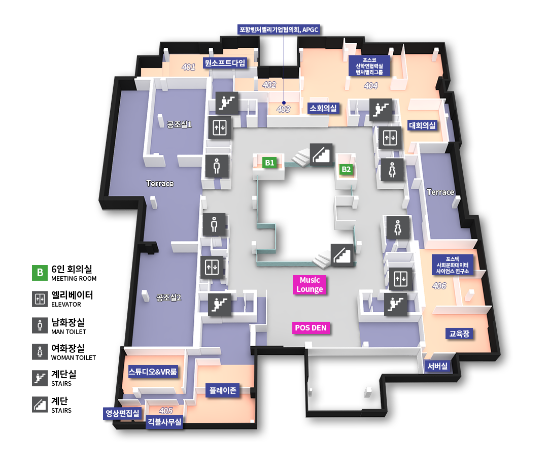 창업 지원기관 사무실, 사회문화 데이터사이언스 연구소, RECEPTION LOUNGE 및